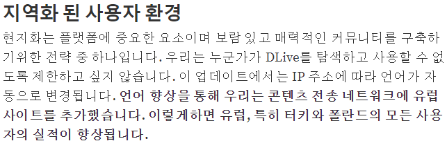 디라이브(DLive) 0.8.2 버전 업데이트 리뷰 - 의외의 대규모 업데이트, 그런데 한국어는 어디로??