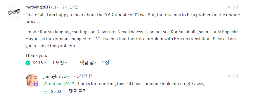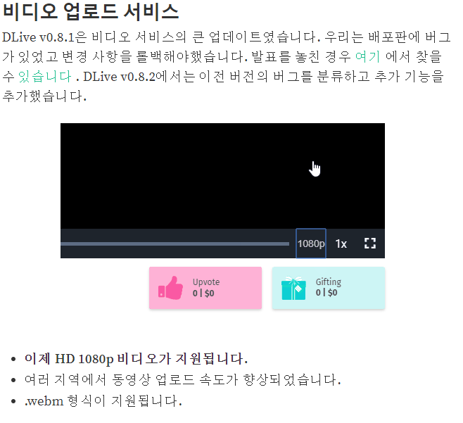 바로 일주일 전에 DLive (이하 디라이브)에서 0.8.1 업데이트를 했었는데요. 비디오 포맷 확장과 일부 버그 수정이 포함된 업데이트였습니다.