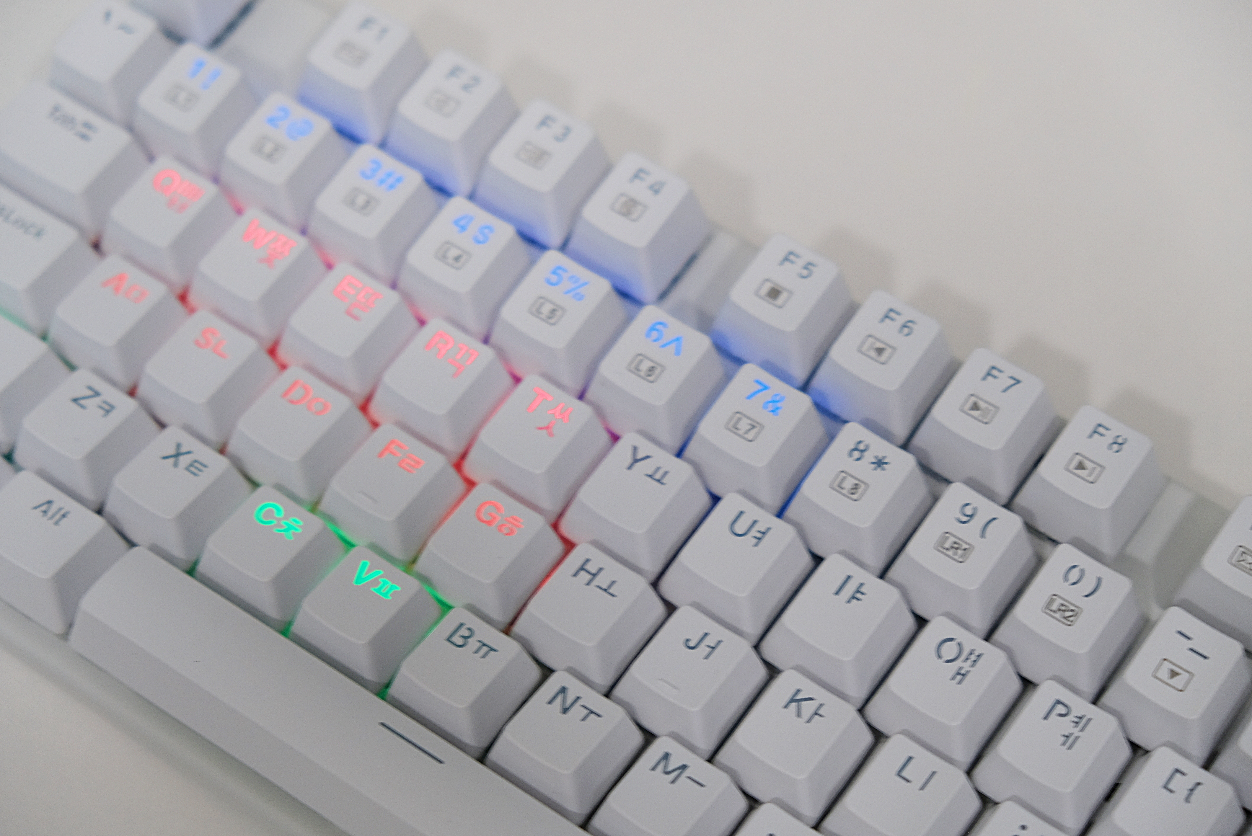 키보드 타이핑 소리가 큰 편이라 조용한 키보드를 원한다면 추천하고 싶지 않다. 하지만 시원시원한 키감에 한번 빠지면 소리가 큰 게 오히려 마음에 들지도 모른다. 만약 청축이 아닌 갈축이나 적축을 사용하고 싶다면 기존 버튼을 빼서 교체가 가능하게 만들어졌다.