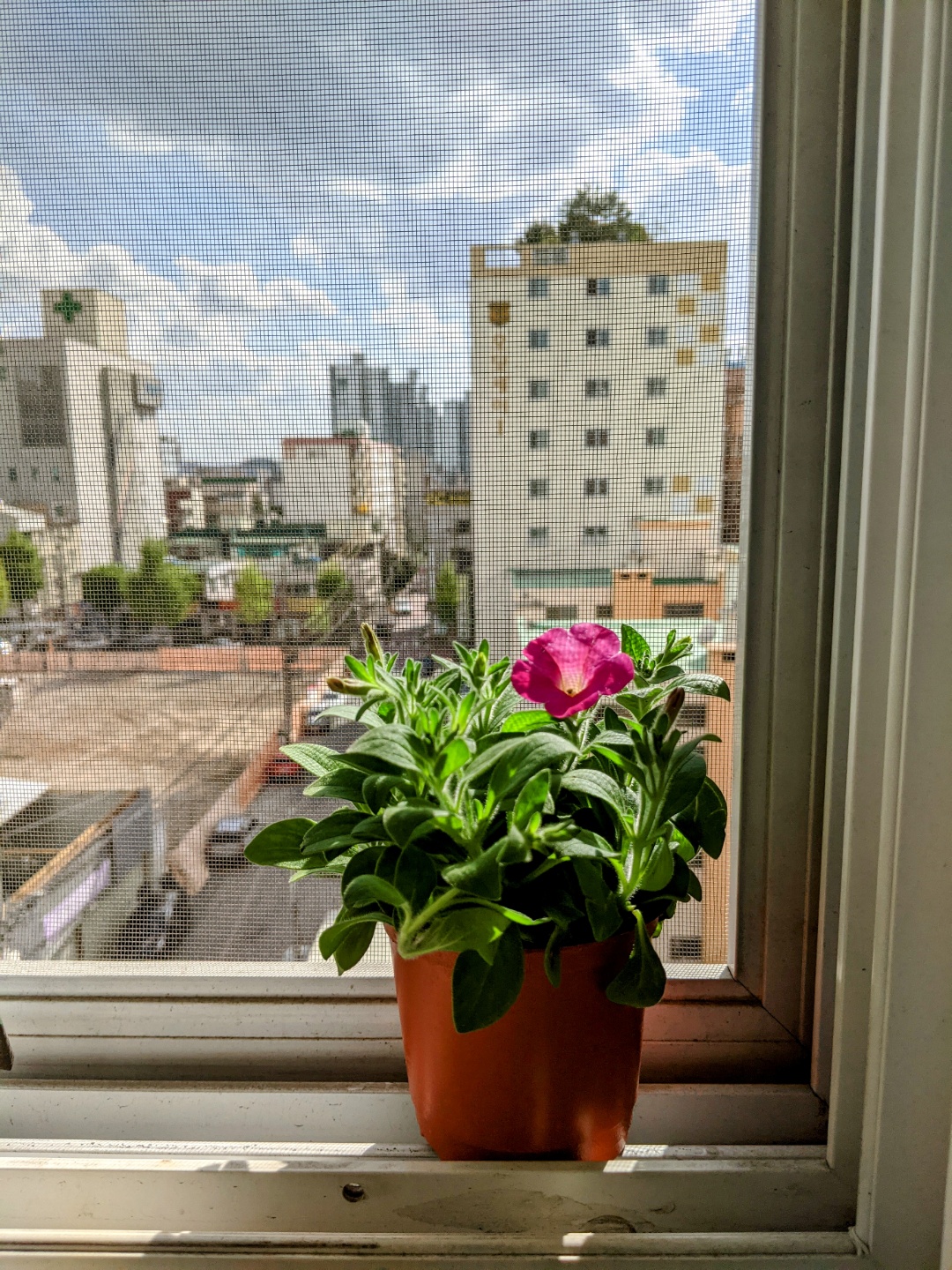 꽃 한 송이가 핀 작은 화분이, 제 화단보다도 풍성하게 느껴지네요. 제 화단에는 라일락이 지고서는 꽃이 없어서 그런지, 아니면 아직까지 빈 자리가 너무 많아서 그런지 모르겠습니다.