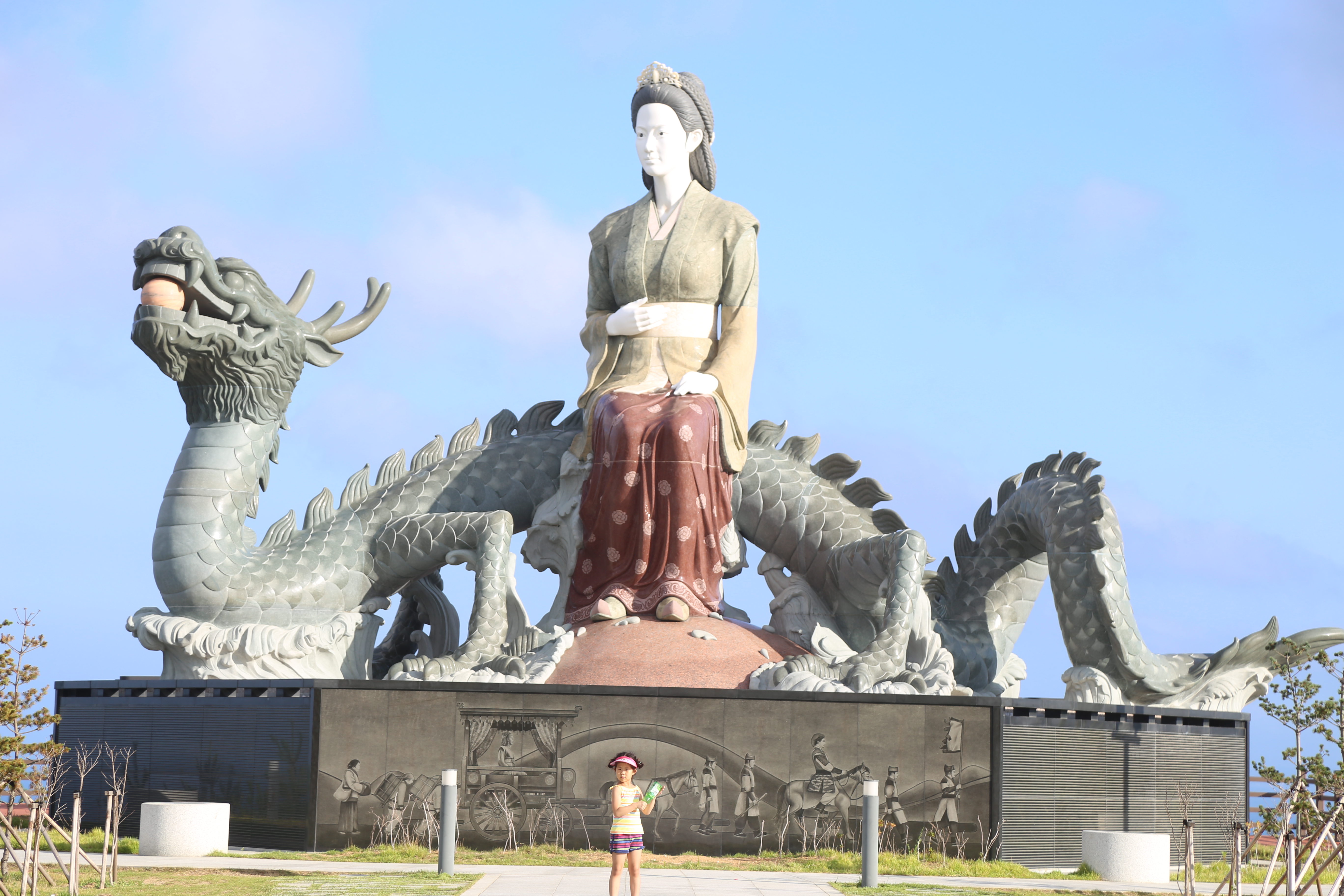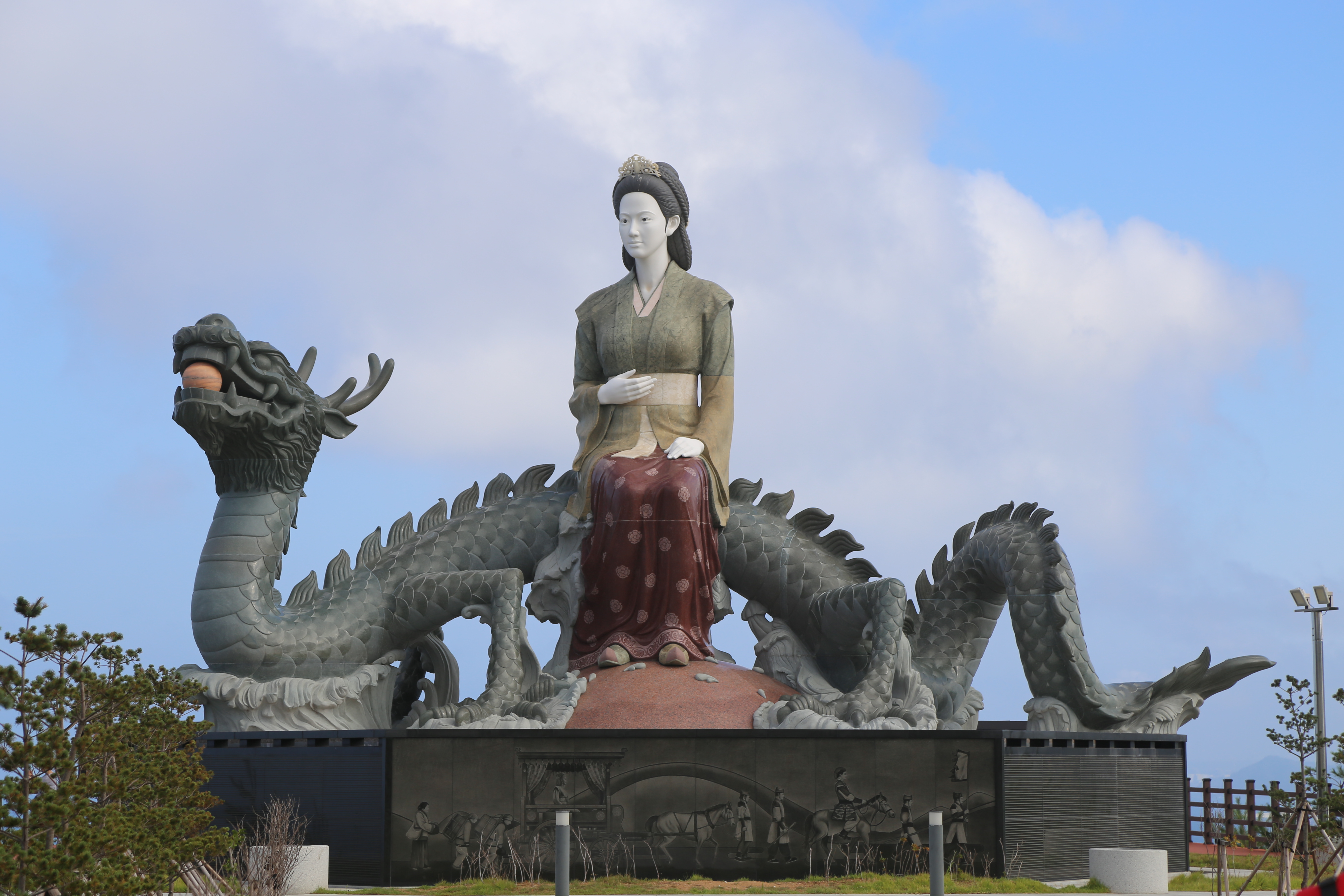 수로부인상.. 여의주를 물고 있는 용을 타고 있음..