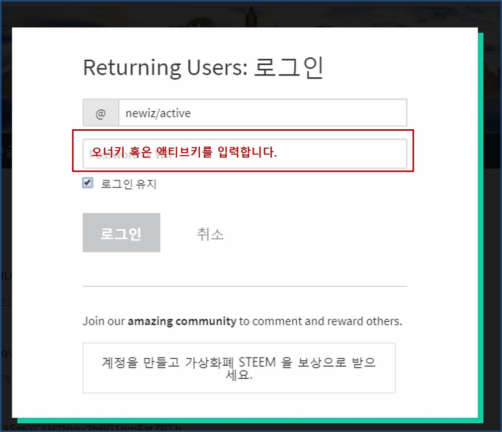 (포스팅키로 로그인하시기 전에, 꼭꼭꼭 마스터키와 액티브키는 별도로 보관해두세요!! ^-^)