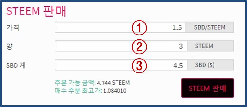③ 판매하고자 하는 STEEM의 양을 기입합니다.