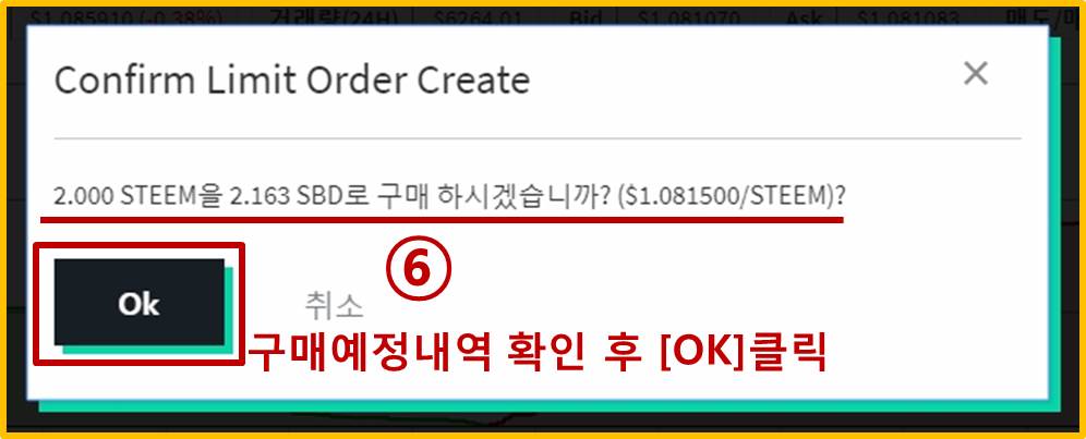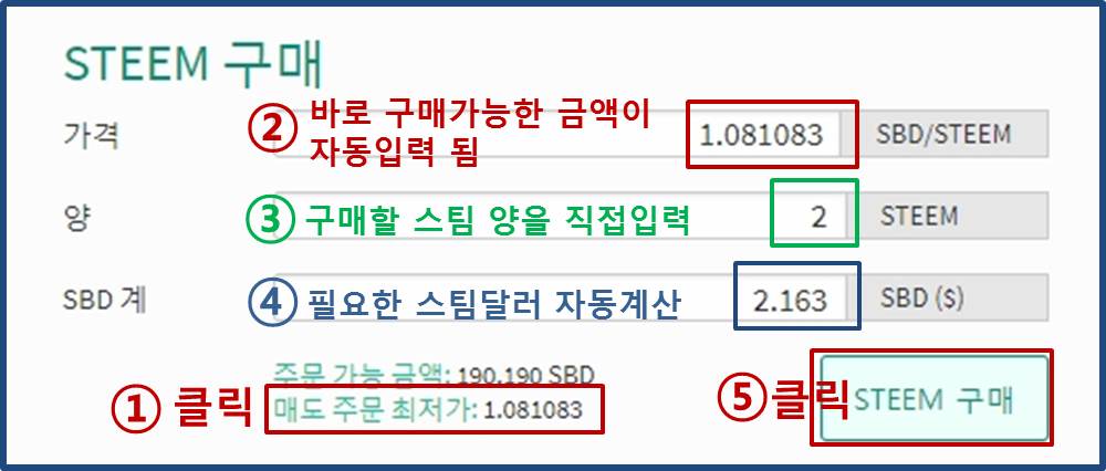 ⑤ [STEEM구매]버튼을 클릭합니다.