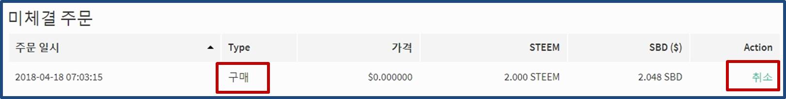 ⑨ 현재 STEEM매수 대기상태의 주문들을 보여줍니다.