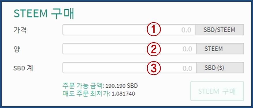 ⑦ STEEM매수 주문 입력란입니다.