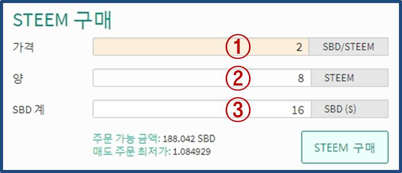 ③ 구매하고자 하는 STEEM의 양을 기입합니다.