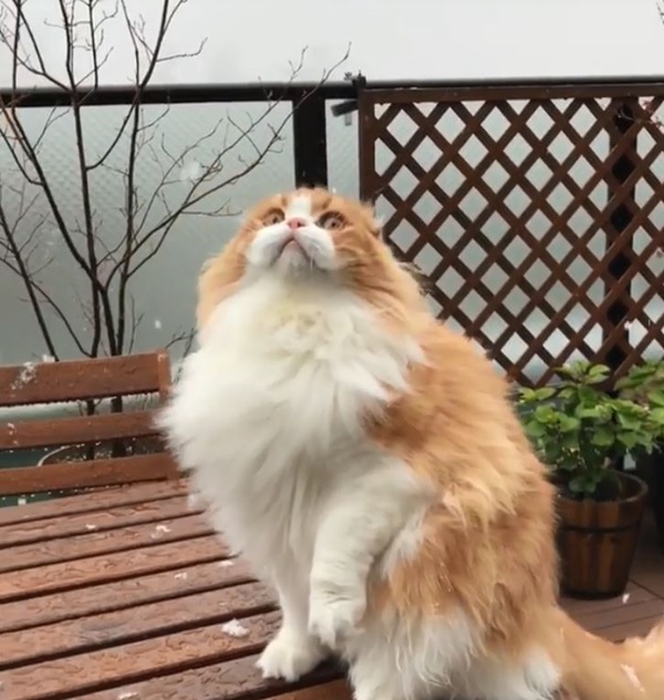 반려동물을 새끼 때부터 키우는 것의 묘미 중 하나는 동물이 난생 처음 보는 것에 대한 반응을 보게 될 때이다. 우리도 매년 첫눈이 올 때 마다 새롭고 아름답게 느껴지기 마련인데, 우리의 반려동물들에게는 어떤 느낌일까?