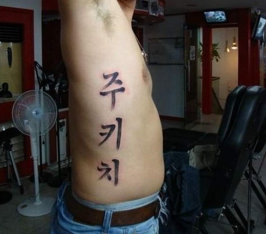 네…..? 이건 무슨 신박한 문신이죠..글씨체라도 예쁜걸로 해주지..