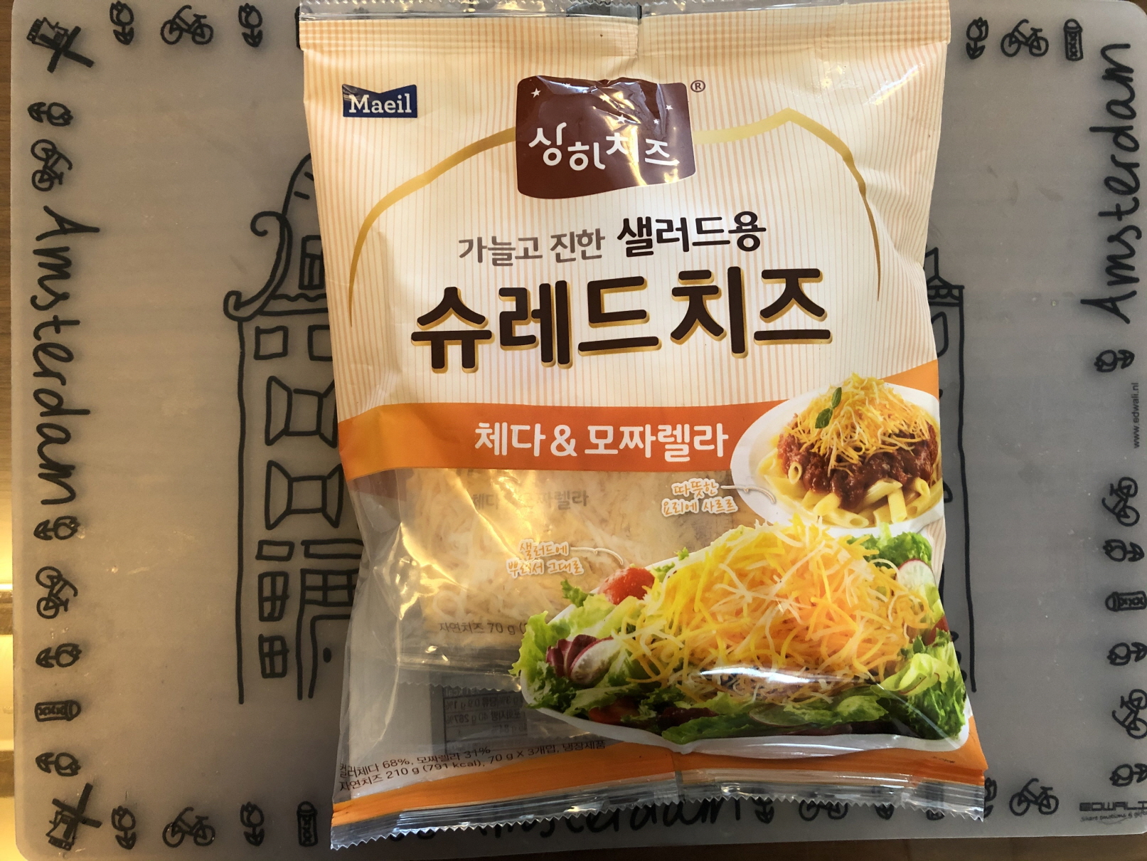 체다 모짜렐라 섞인 슈레드치즈 샀는데요.