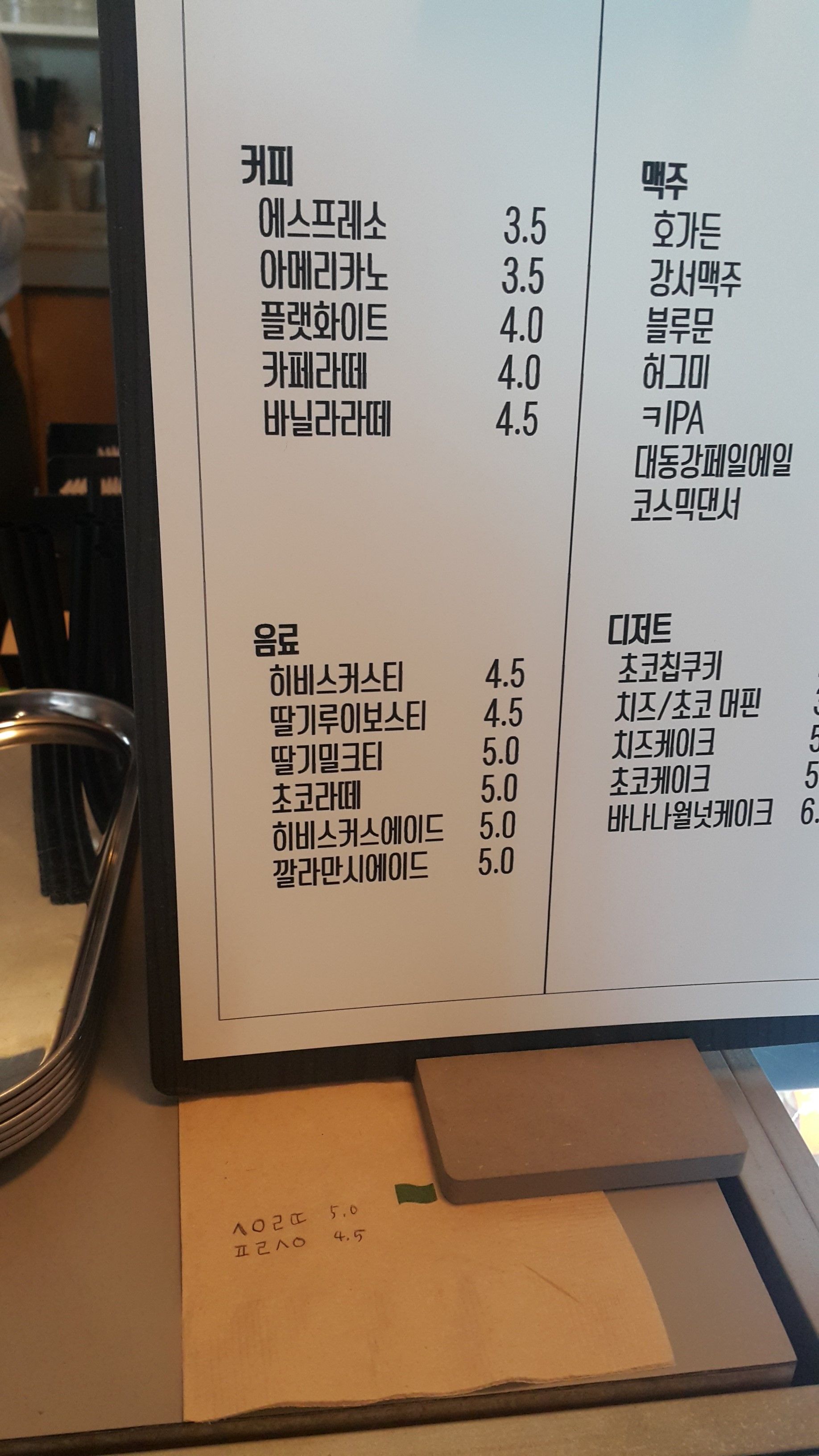 이렇게 메뉴판 앞에 ㅅㅇㄹㄸ와 ㅍㄹ ㅅㅇ 히든?메뉴가 써 있습니다!