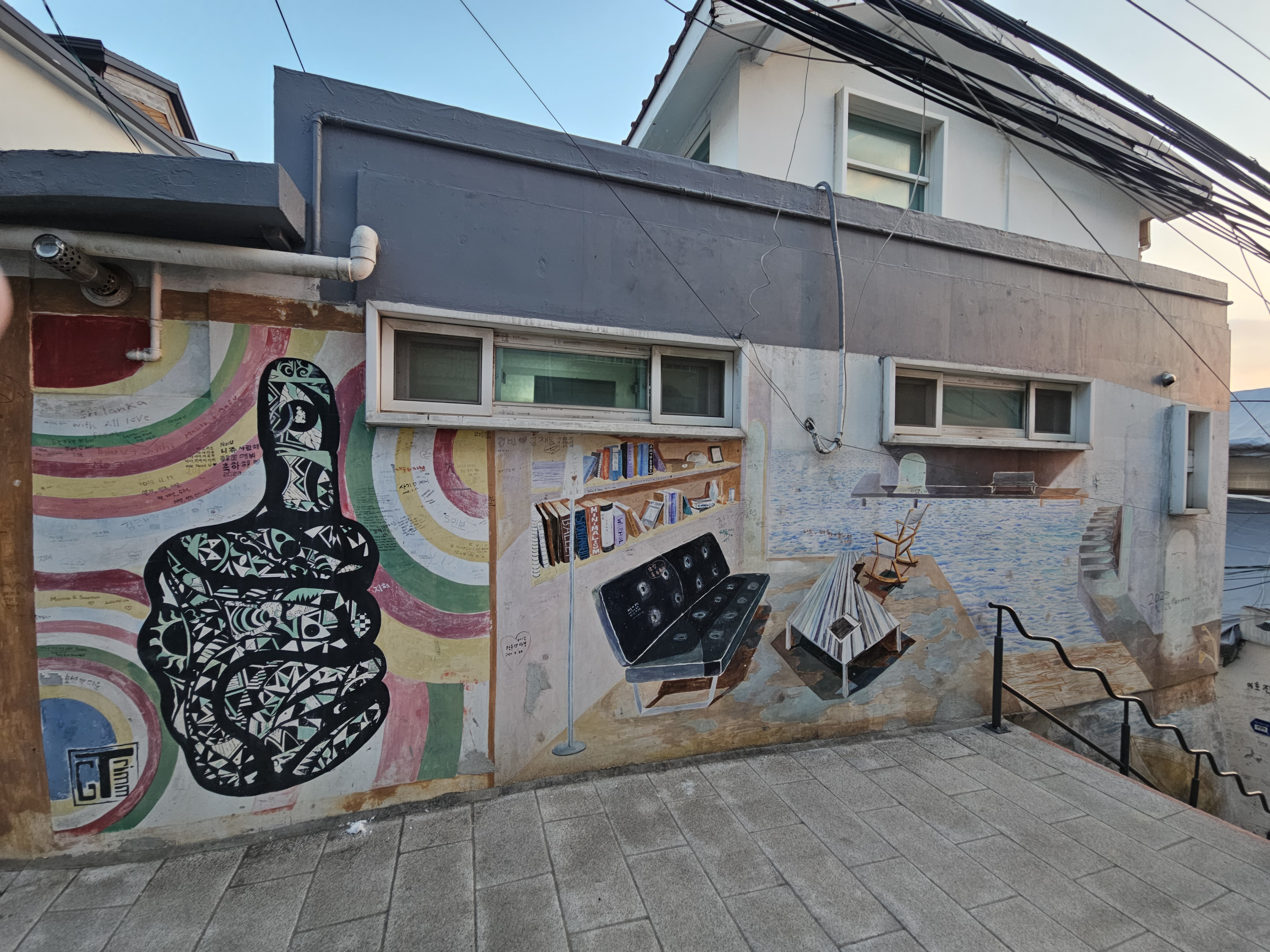 벽화마을이라 골목 골목 근처에 벽화가 있습니다.