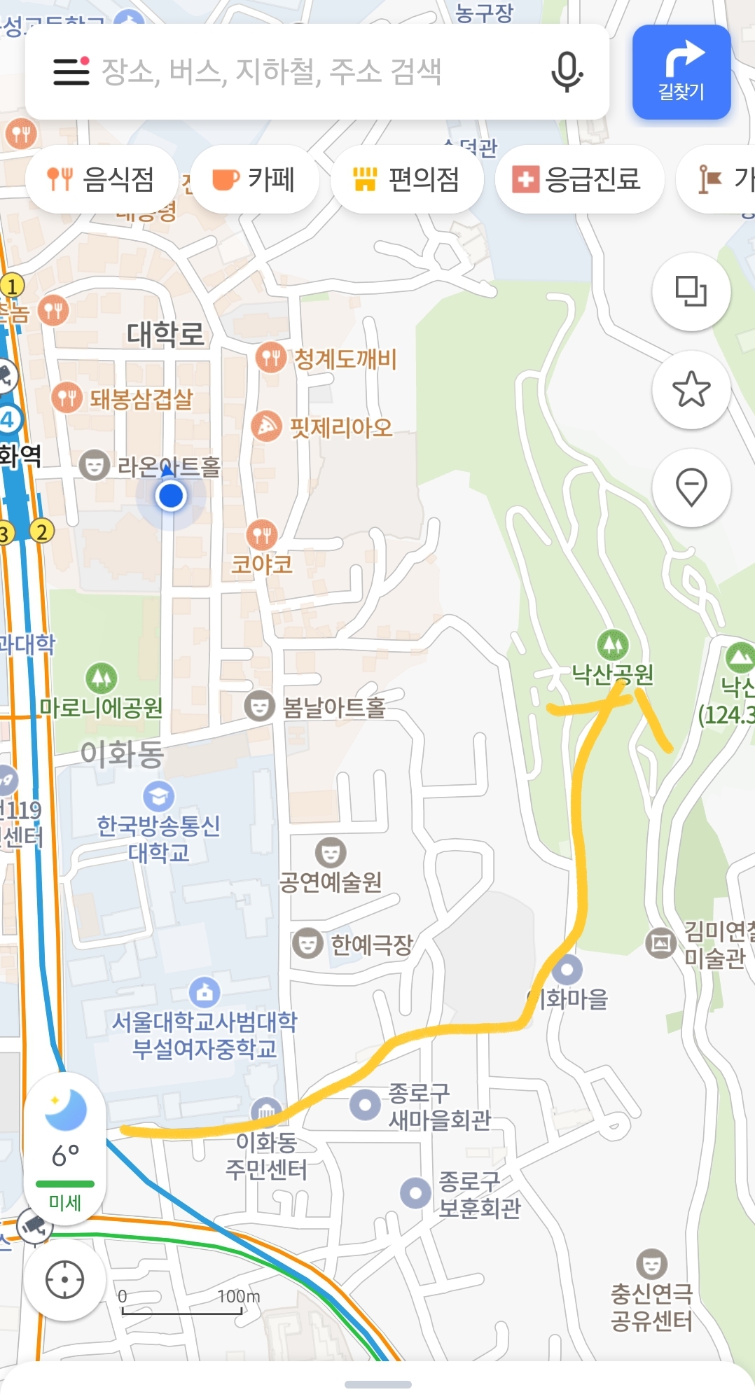 오늘의 루트는 다음과 같습니다. 이 루트로 이화동 벽화마을 ~ 낙산을 다녀오고 대학로쪽으로 내려왔습니다.