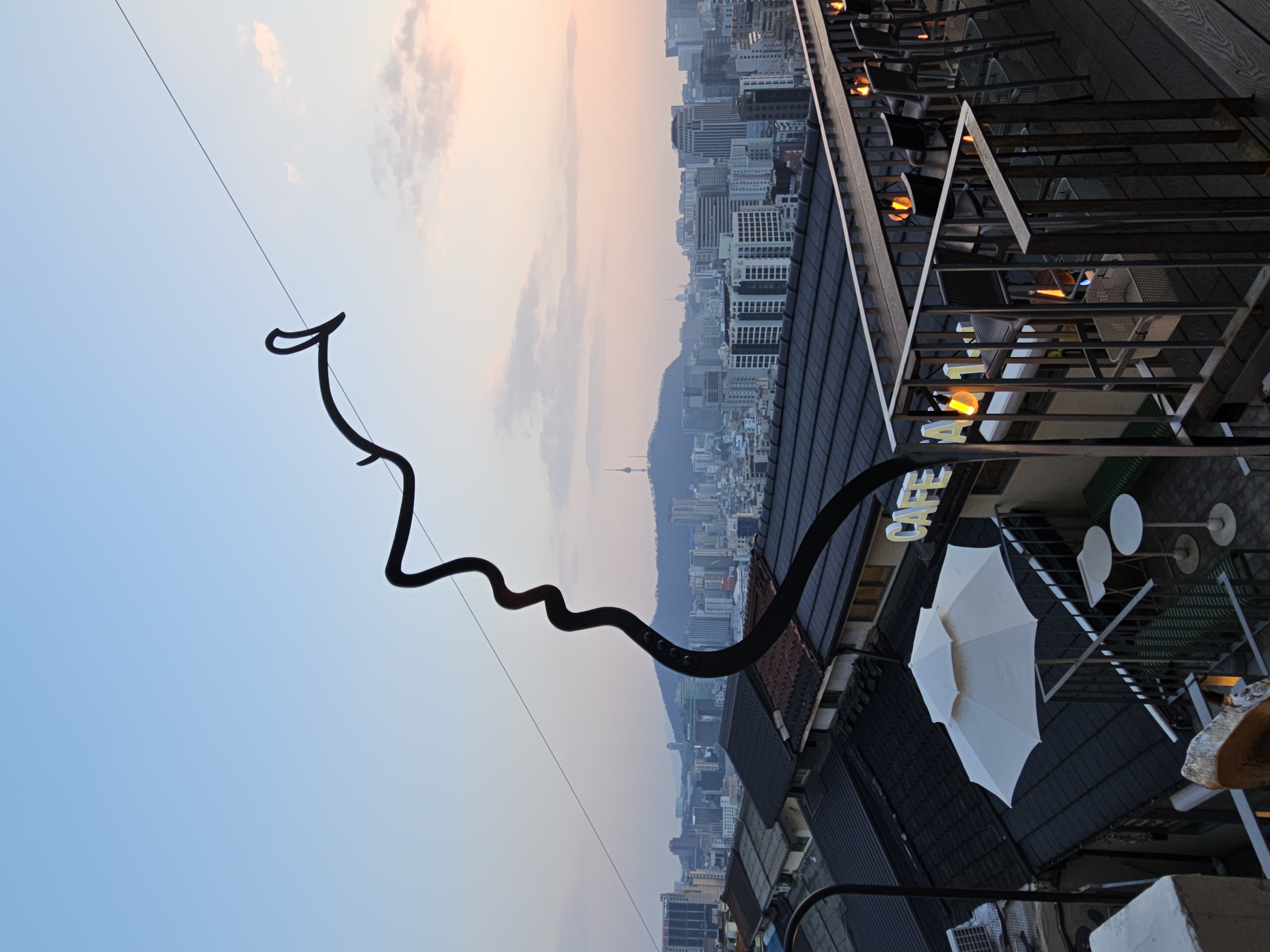 카페 조형물을 배경으로... 멀리 남산타워가 보입니다.