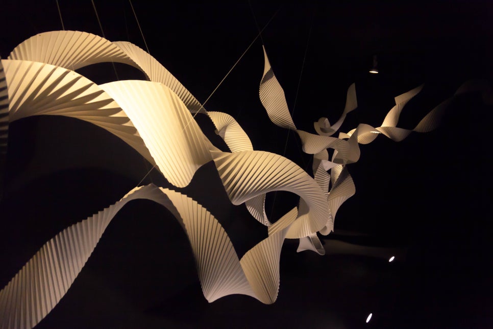 자연과 건축물의 형상에서 영감을 받아 작품활동을 하고있습니다. 흰색의 종이만 이용하여 기계를 사용하지않고 여러가지 방법으로 종이를 가공하는 작가입니다. 섬세한 곡선을 만들어 낸 작품들이 전시되어있습니다.