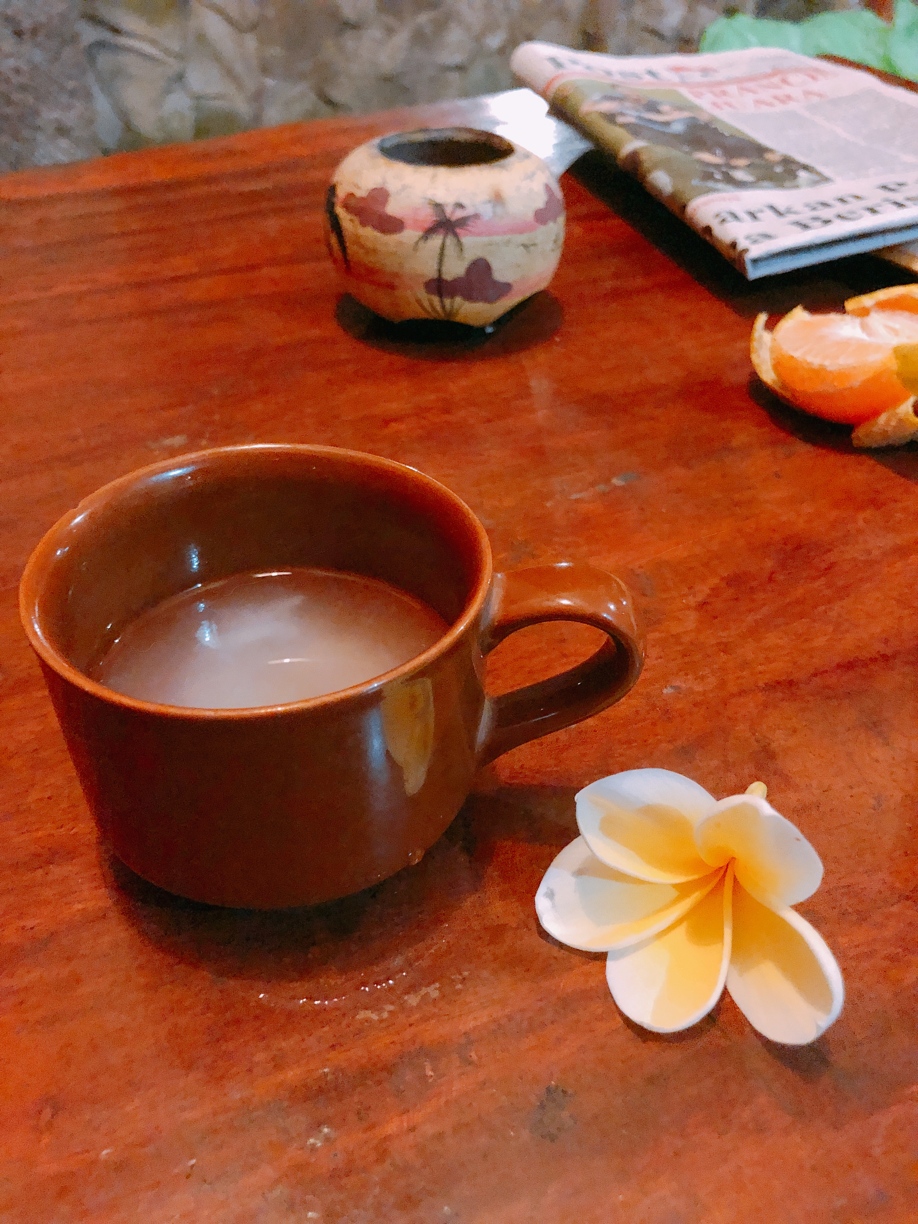 숙소로 돌아와 신라면 맛이 나는 일본 컨셉 라면을 먹고 직원이 먹어보라며 준 직접 끓인 '코코넛레몬x레몬그라스진저 티(이름모름)'를 받았다. 차는 좋아해도 레몬그라스는 입도 대지 못 했었는데 신기하게도 직원이 준 차는 정말 맛있었다. 순식간에 한 잔을 비웠다.