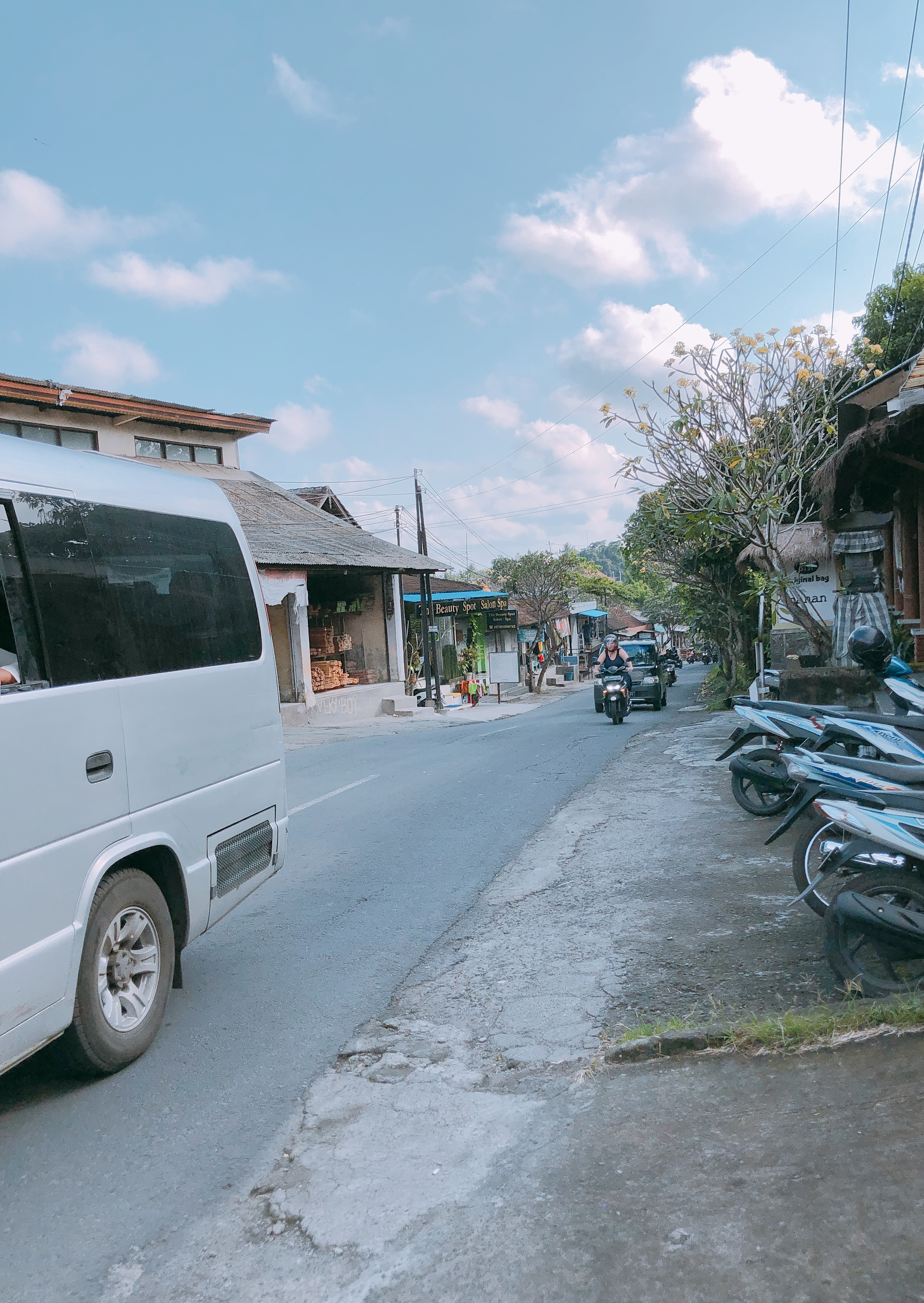 그렇게 하염없이 길을 걷다 한적한 길로 접어들자 사정은 조금 나아졌지만, 포장되지 않은 길 옆으로 무거운 짐을 끌고 가기엔 길 사정이 좋지 않은 건 매한가지였다. 찻길 가장자리 20cm를 걸치고 오토바이와 차가 질주하는 도로를 달리는 나. 미쳤나 싶을 정도로 위험한 행동이었지만 이제 와서 돌아갈 수도 없었다. 그나마 내리막길과 그늘이 있어 다행이었다. 앞서 말했듯 9월까지 건기에 접어드는 발리인지라 그늘에서 잠시 쉬고 있으면 조금은 살만 했다. (저녁에 맥주를 먹으며 테라스에 앉으니 그렇게 시원하더라)