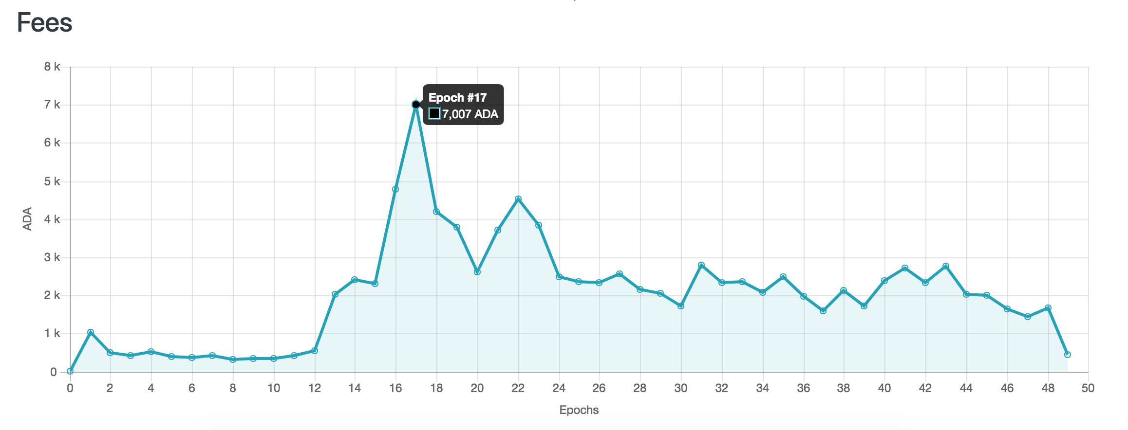 유통량이 엄청나게 많았던 것에 이해 이 에포크 구간의 수수료 발생량은 평균 수준이었기 때문입니다.