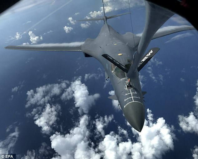 After the latest nuclear weapons tests, U.S warplanes, including B-1B abundant bombers (pictured) agitated out abutting all-embracing activity drills over South Korea