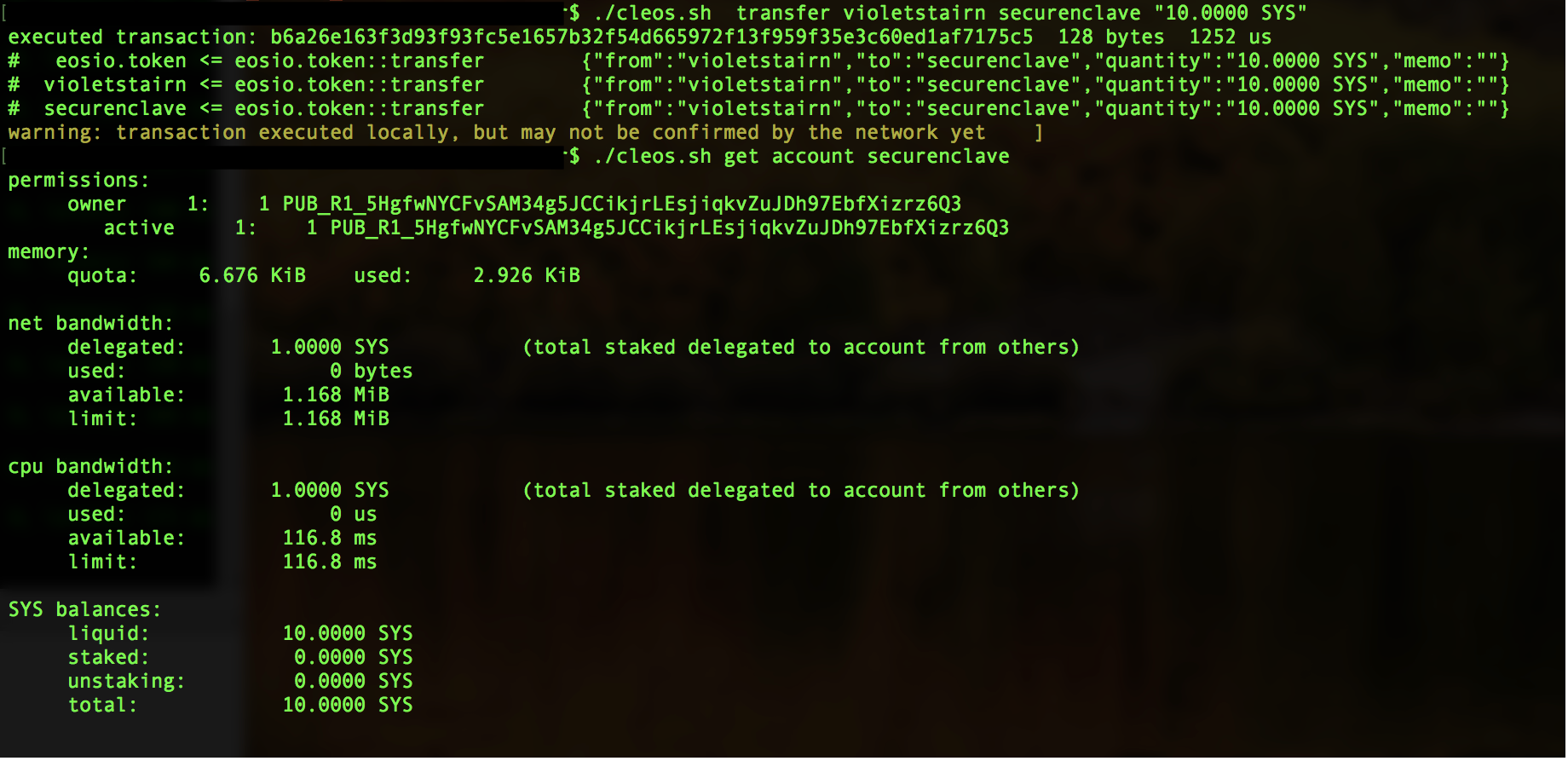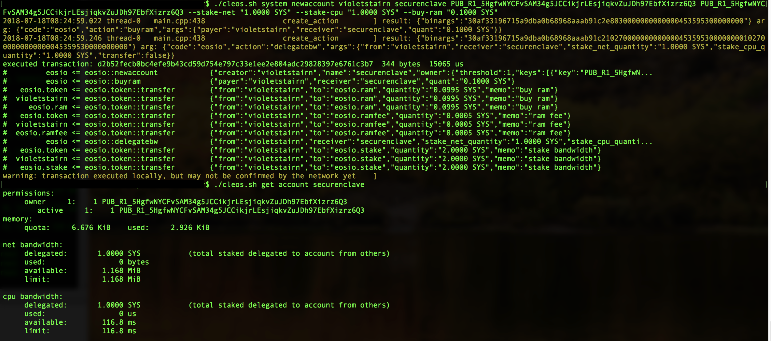 system newaccount [softwallet_account] [hardwallet_account] [owner key] [active key] --stake-net "1.0000 SYS" --stake-cpu "1.0000 SYS" --buy-ram "0.1000 SYS"