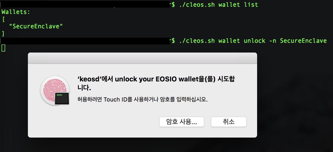[EOS] Macbook 사용자에게 희소식! TouchID를 이용한 Secure Wallet 기능 사용법!