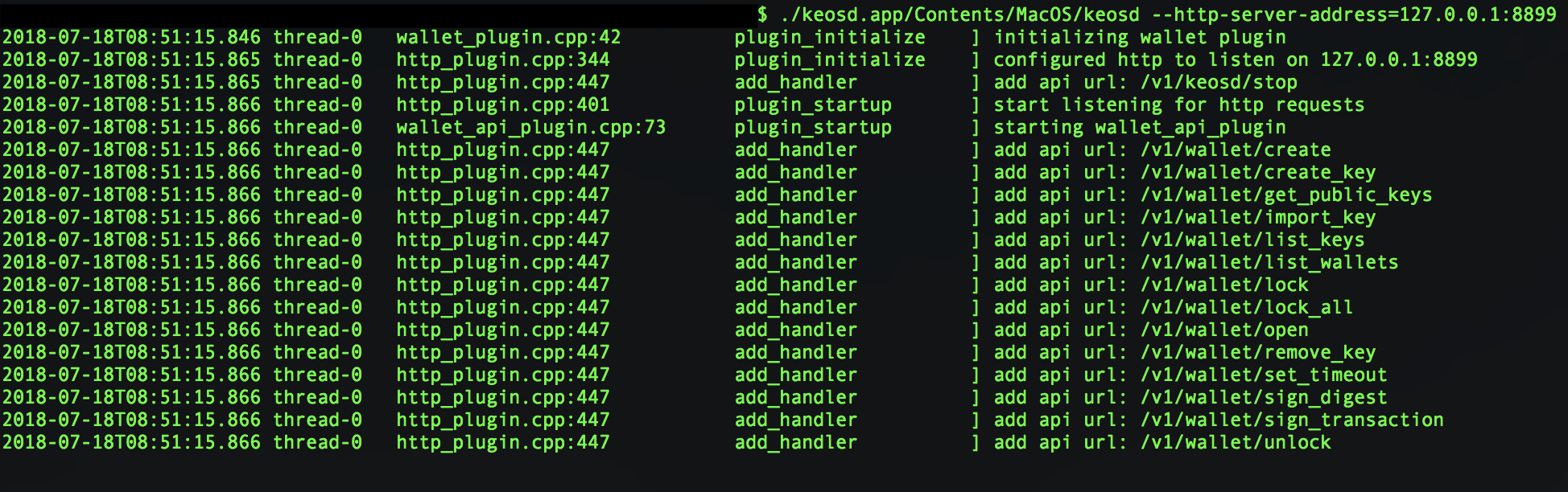 2.새로 컴파일된 keosd 실행