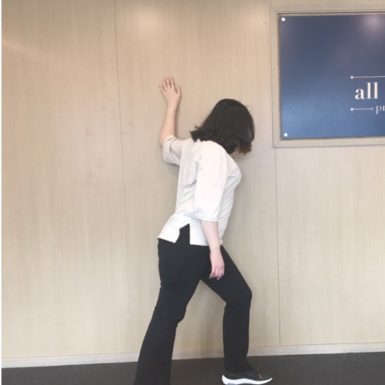 - 벽에 한 쪽팔을 90도로 굽혀서서 짚어준다.