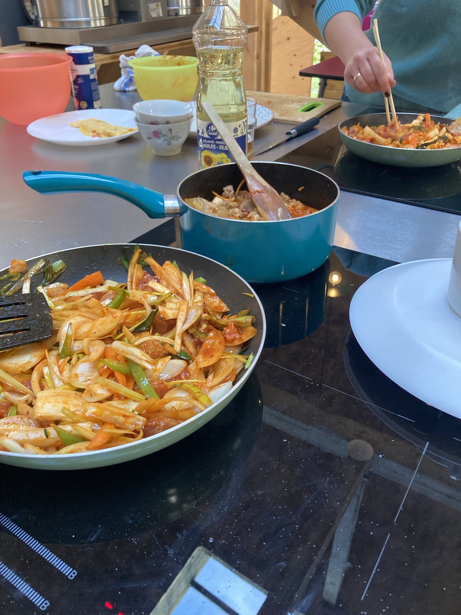 프랑스에서 김치찌개랑 제육볶음 그리고 치즈 계란말이panpare (43)in #kr • 4 years ago 프랑스 문화 아뜰리에를 릴에서 시작한지 벌써 6개월이 넘었다. 같이 밥해먹고 이야기 나누는게 좋아서 시작했는데 이제는 다음 문화아뜰리에가 언제인지 물어보는 연락이 온다. 날씨가 추워지니 김치찌개가 생각나서 프랑스 친구들이 잘 먹을까? 하면서 걱정했는데 김치찌개는 다 먹었고 제육볶음은 집에 싸갈정도로 인기가 좋다. #france #fr #atelier #culture #kimchi