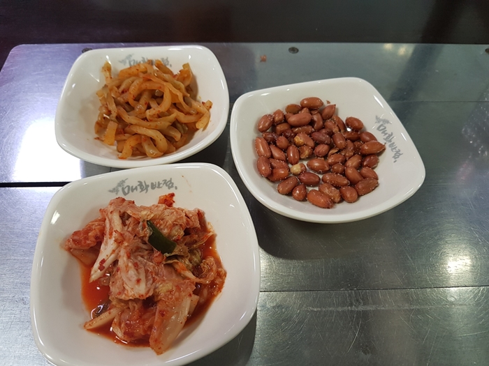 기본 반찬입니다. 중식당, 특히 양꼬치 집에 가면 위 반찬이 자주 나오죠?ㅋㅋ ! 자차이, 땅콩, 김치입니다.
