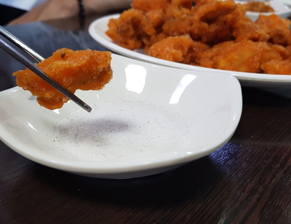 튀김이기 때문에, 소금만 찍어 먹으면 빨리 느끼해질 것이라고 생각했는데 다행히 다 먹을 때 까지