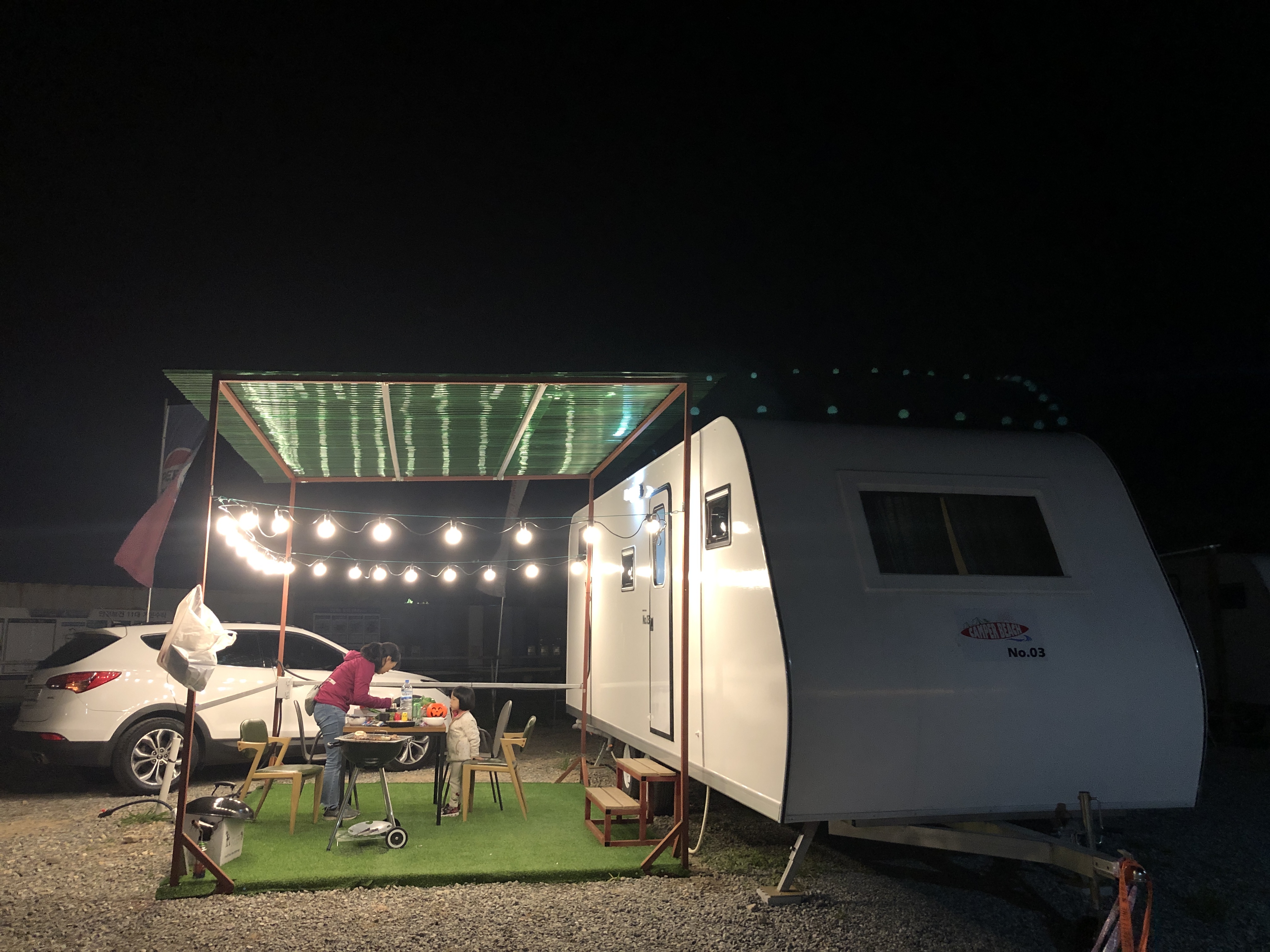 캠퍼비치라는 캠핑장에 카라반을 예약해 가족과 함께 찾았다.