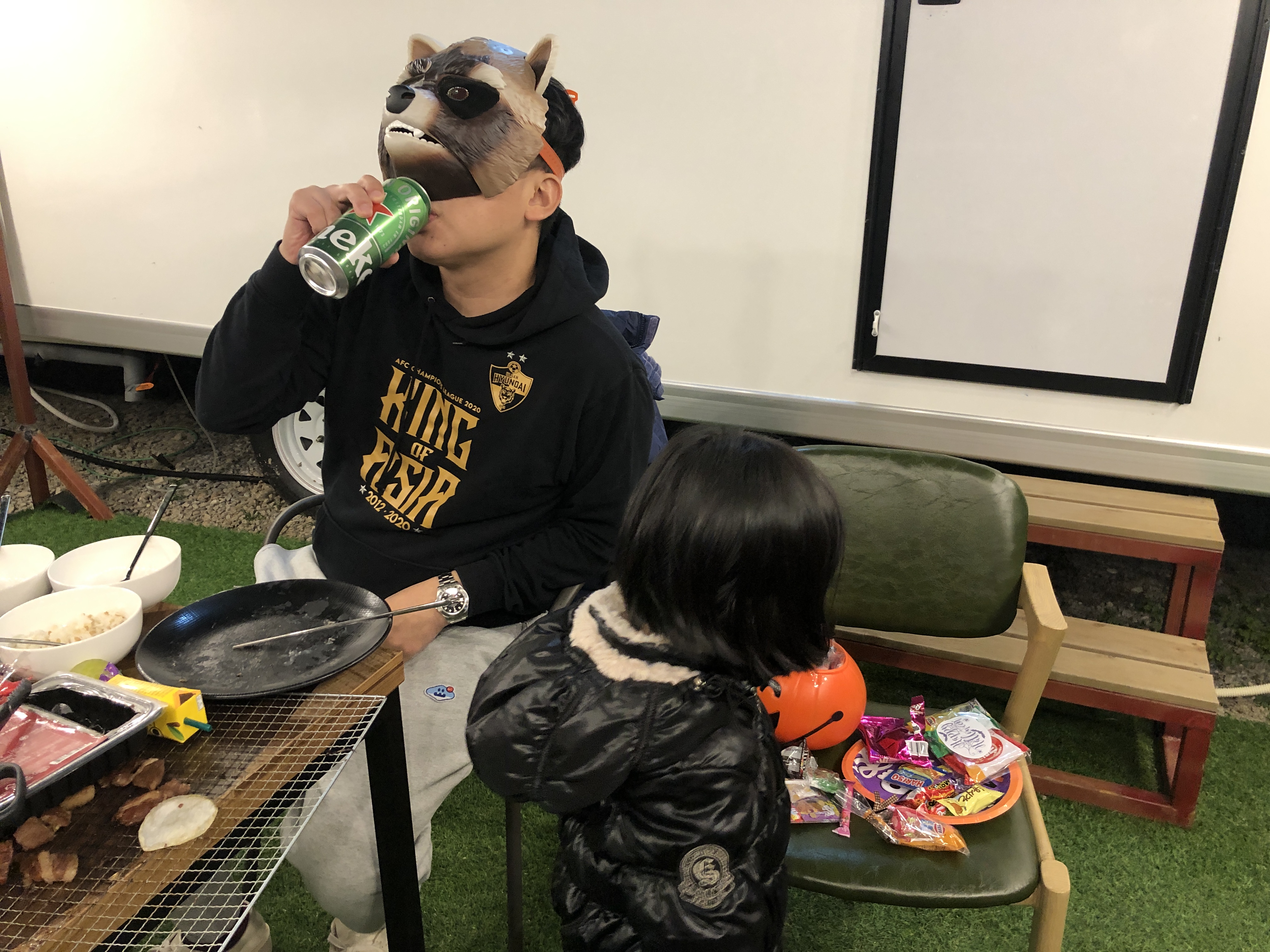 마침 할로윈 파티를 했는데 아이가 물 만난 물고기처럼 사탕, 초콜릿, 젤리 등 온갖 전리품을 다 챙겼고, 행복한지 의기양양했다.