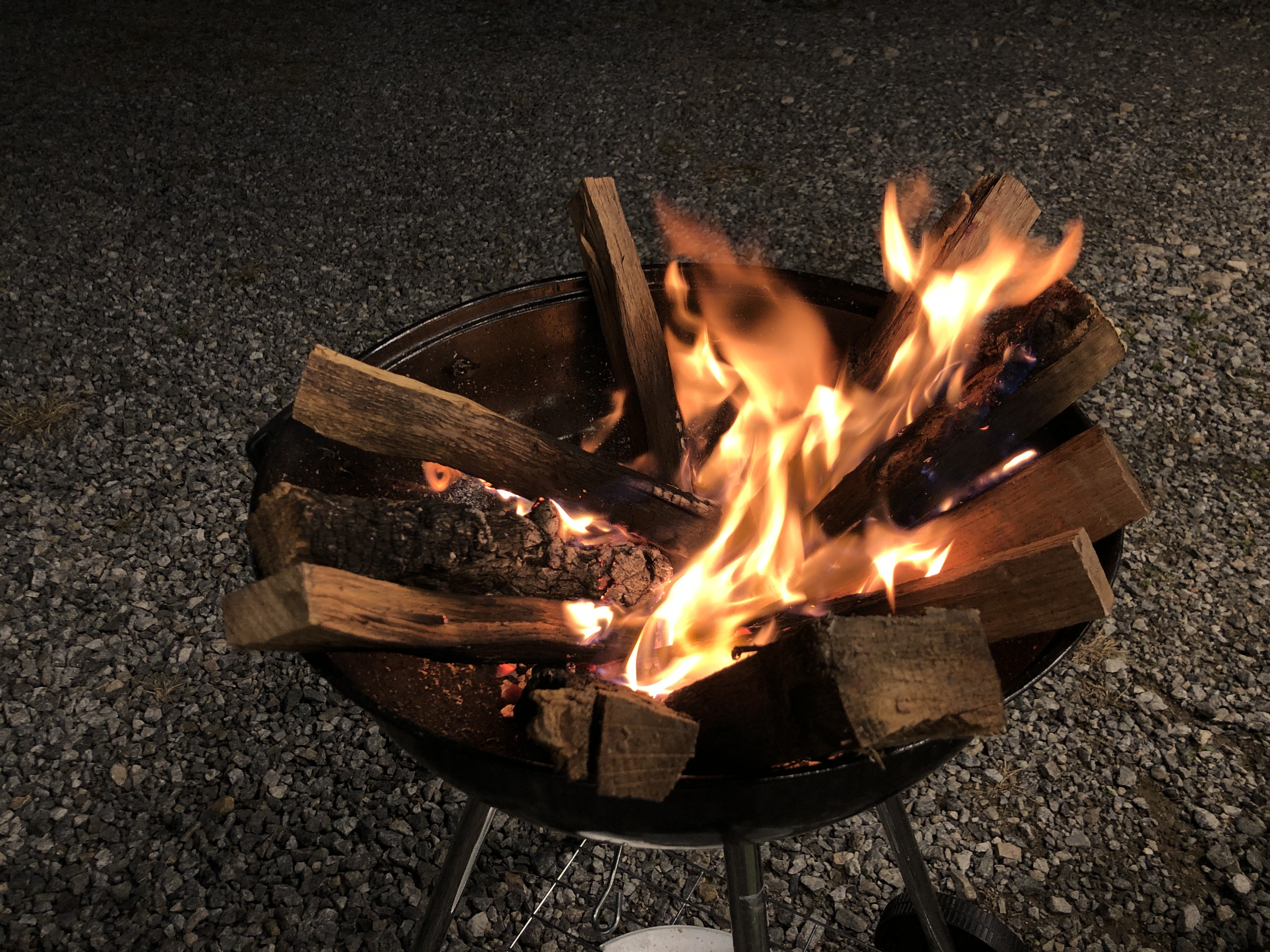 애를 일찍 재우고 아내와 장작불 앞에서 불멍 타임.