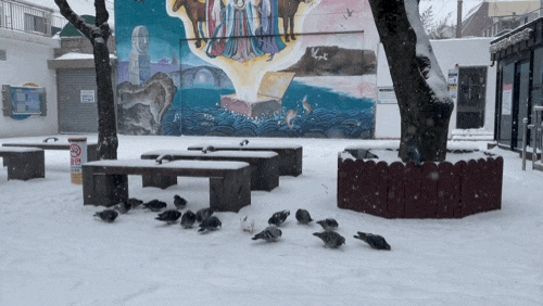 비둘기들은 눈속에서 무엇을 찾고 있는걸까요?