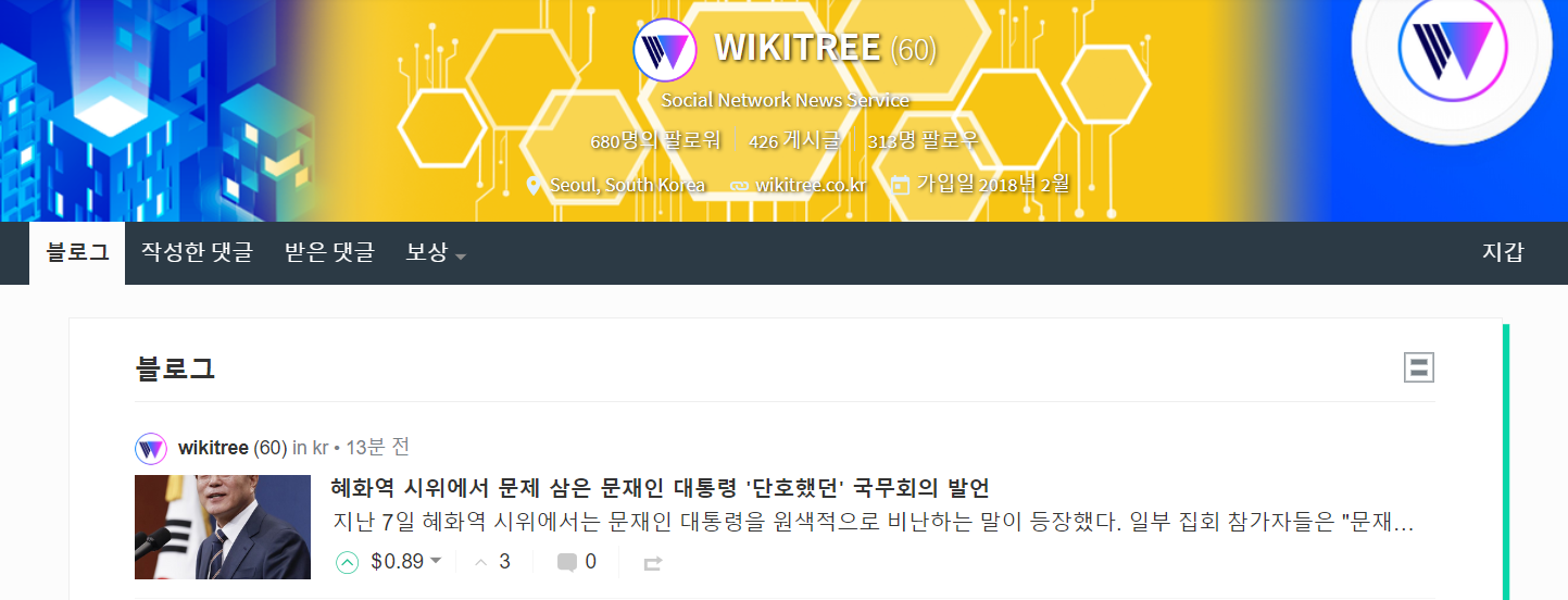 온라인 콘텐츠 강자 위키트리가 스팀잇에서 활약하고 있다는 것이죠.