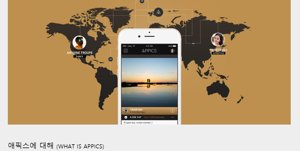 애픽스는 사진을 올리는 자, 반응하는 자, 공유하는 자 모두 보상을 받을 수 있다.