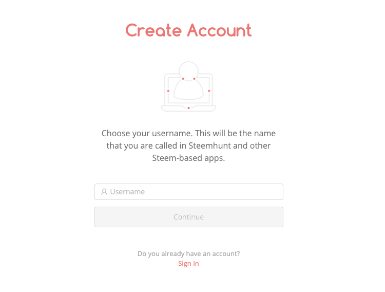 - 신규 유저가 스팀헌트의 계정생성 인터페이스를 통해 (https://steemhunt.com/sign-up) 계정을 만듭니다.
