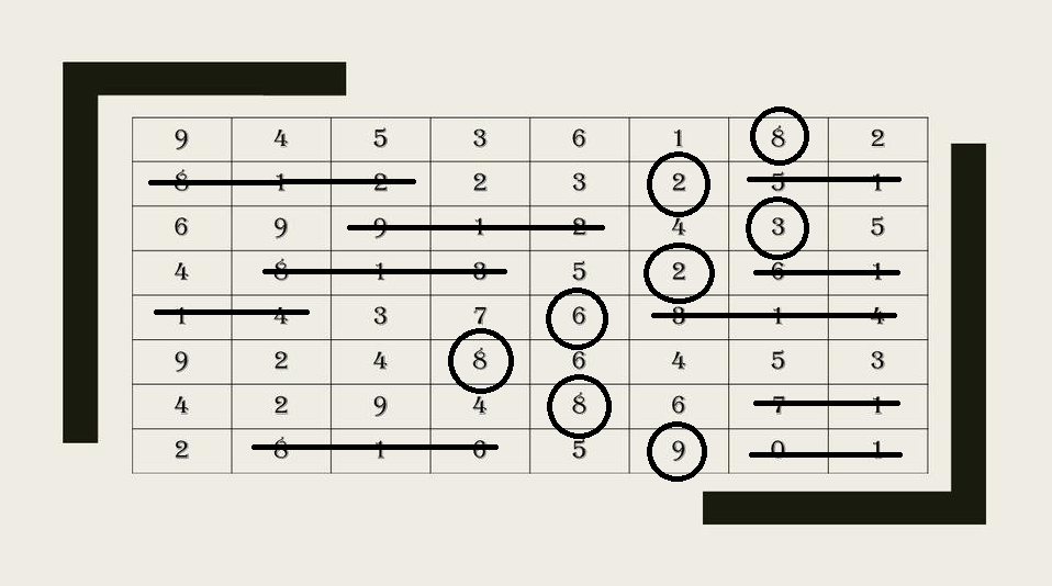 아래그림의 맨 윗줄에서 시작해서 아랫줄까지 숫자들을 연결해 모두 더할때 얻을 수 있는 최대값의 경로는?