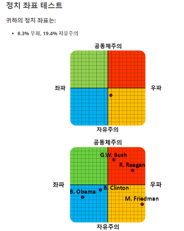 정치좌표테스트qrwerq (73)in #kr • 4 years ago 예상대로 자유주의-중도 우파 정도. https://www.idrlabs.com/kr/political-coordinates/test.php #ko #qrwerq #kr-writing