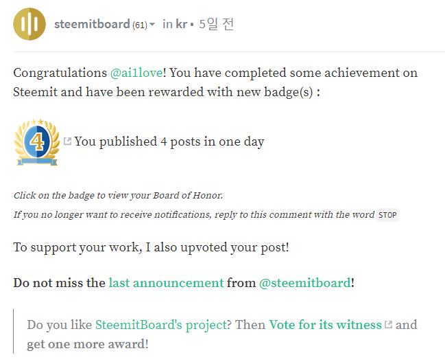 하루에 글 4개 올리면 주는 보상이 따로있나요 ??