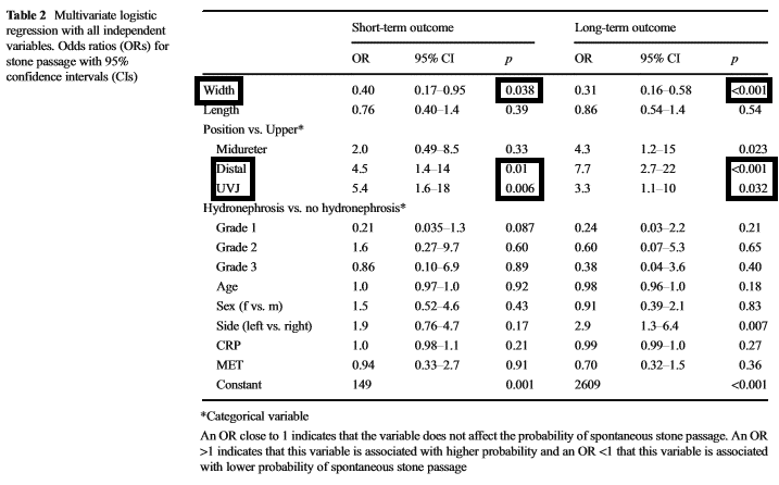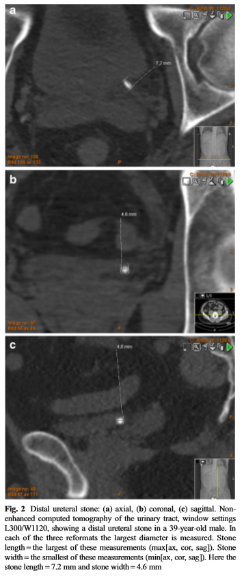 Size matters:The width and location of a ureteral stone accurately predict the chance of spontaneous passage, Johan Jendeber et al. Eur Radiol (2017) 27:4775–4785.