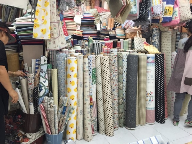 얼마전에 서문시장에 갔을때 매장에 가봤는데 이미 갖고 있는 원단들이 많아서 따로 여기서 구입한 건 없어요