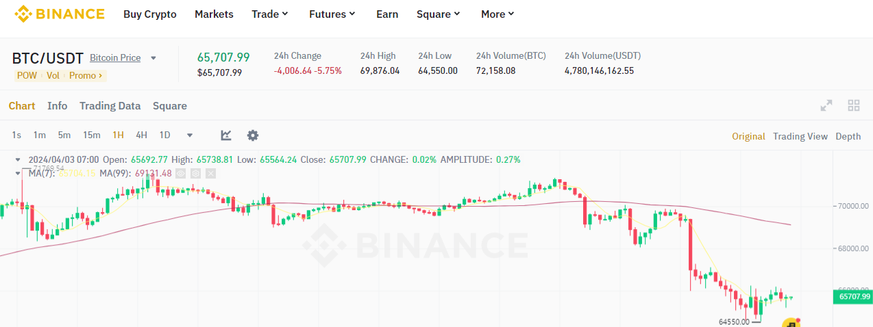 64,000부대까지 밀렸디 지금은 65,000불대.