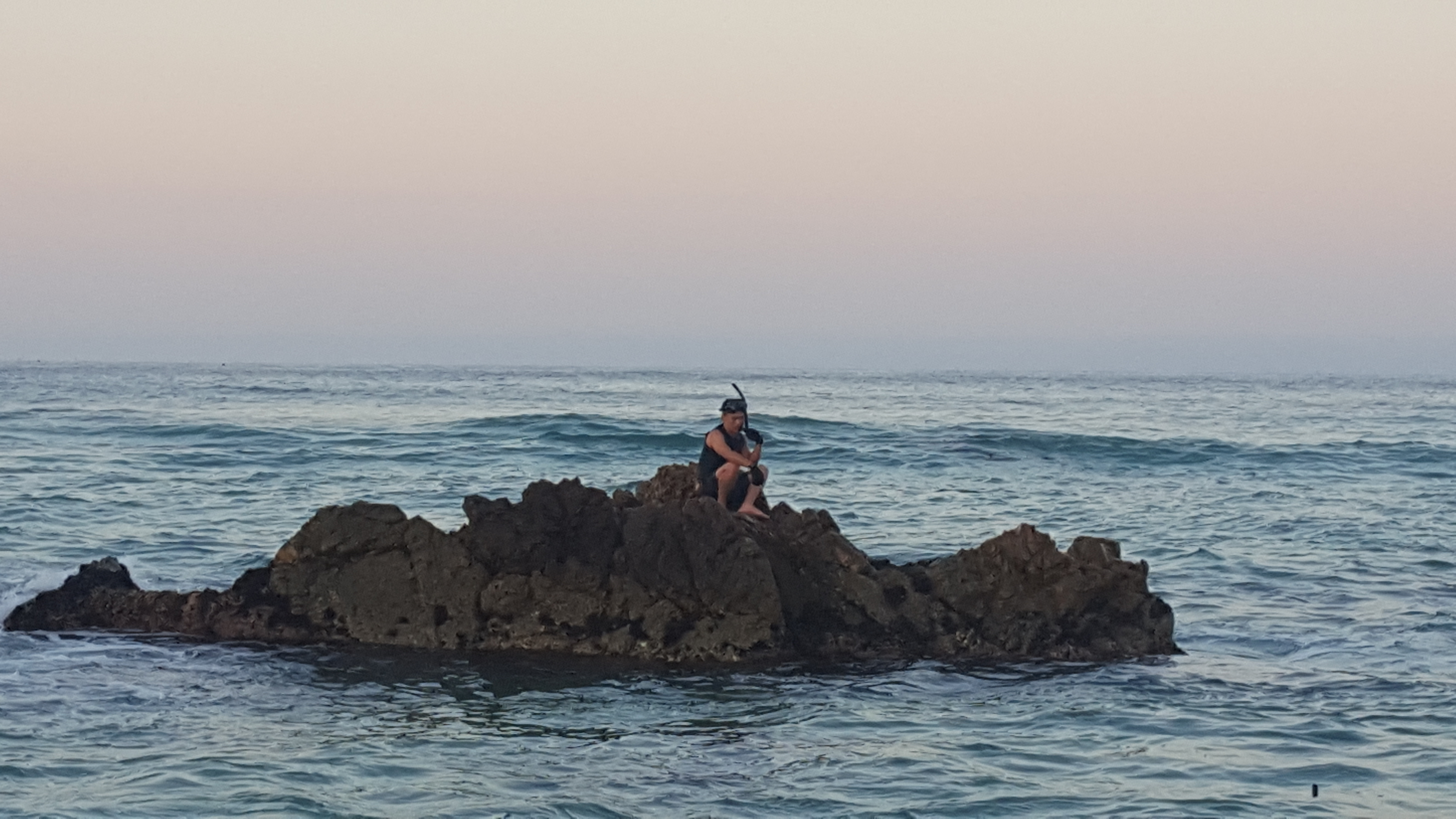 위험 하다고 말렸으나 뭐라도 잡겠다고 음주 수영 열심히 해서 갯바위 까지 갔으나