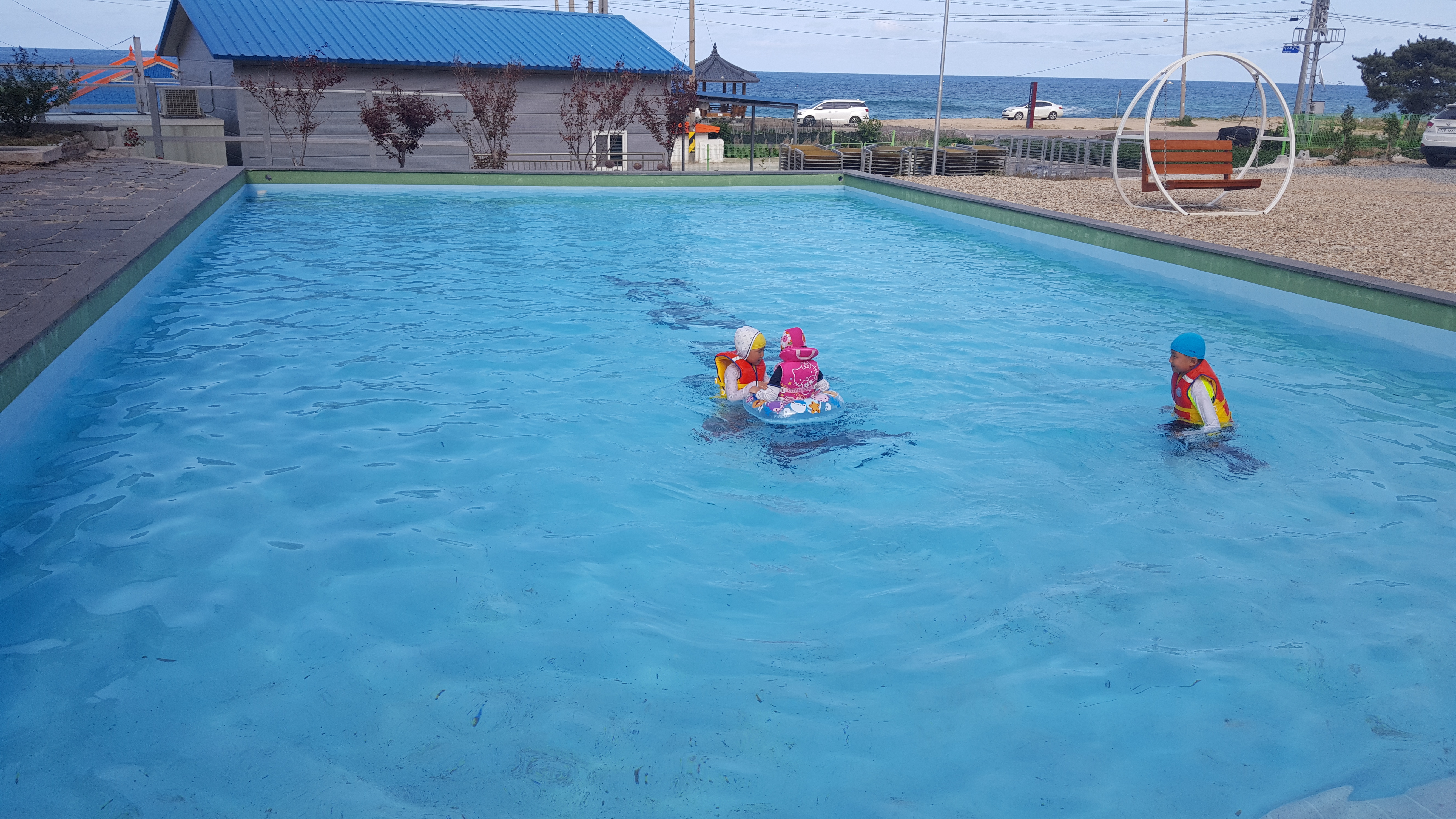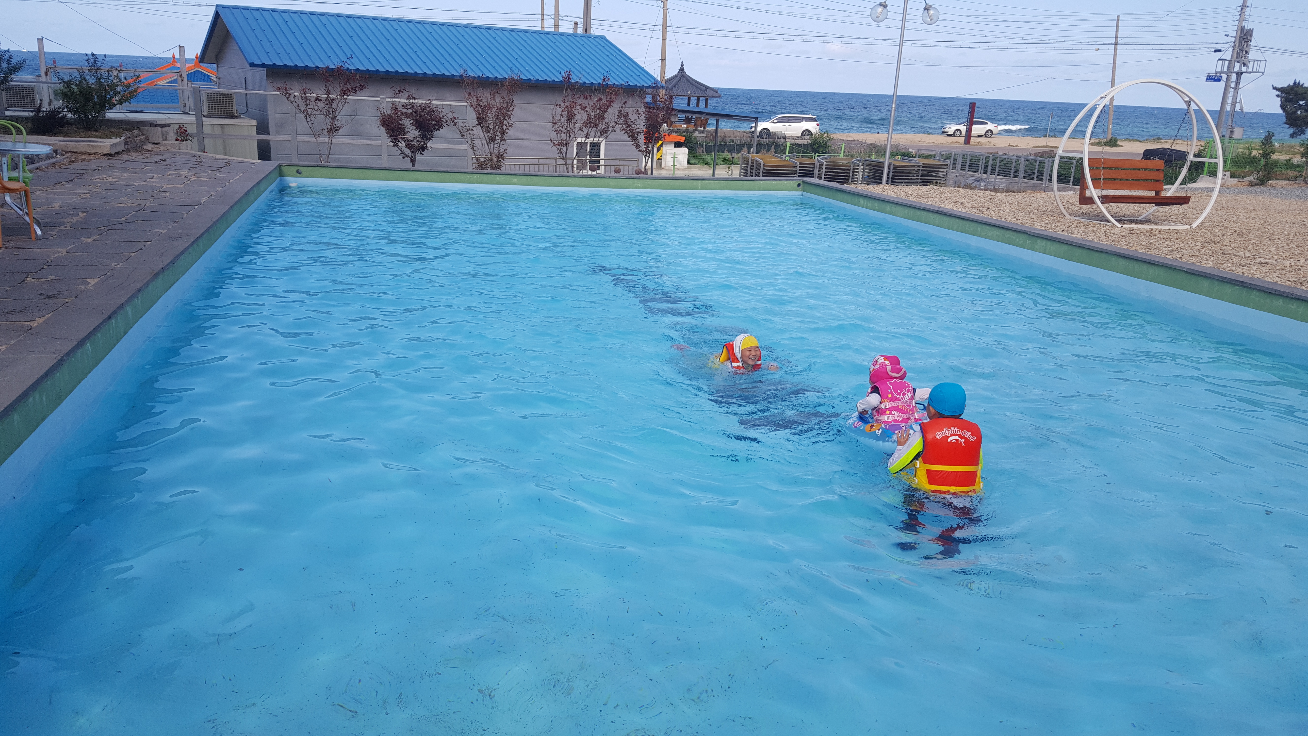 펜션 수영장이 생각보다 크군요! 아이들 놀기에 딱일듯...