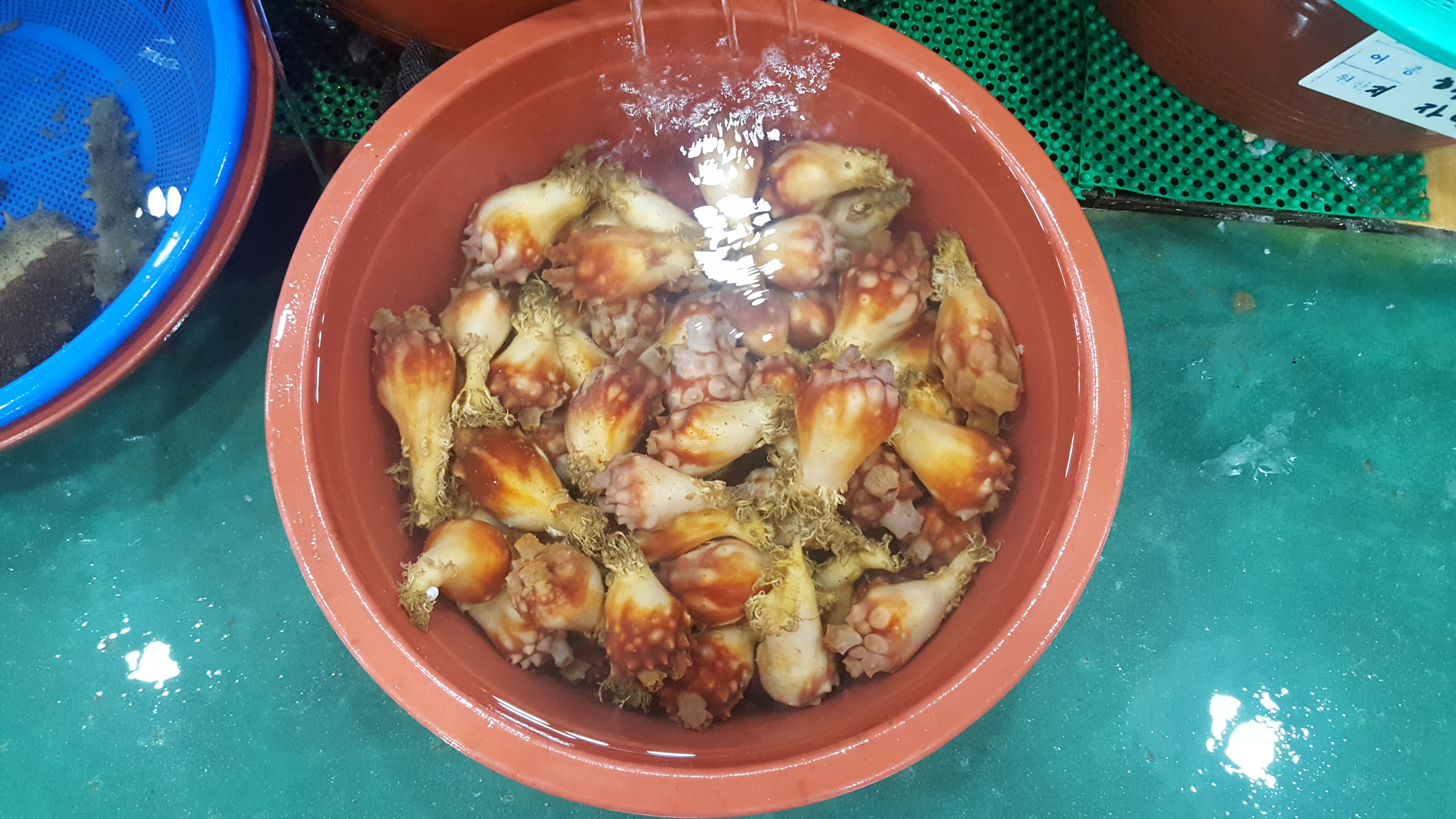 아내가 좋아 는 멍게,횟감,그리고 애들을 위한 홍게를 샀다.