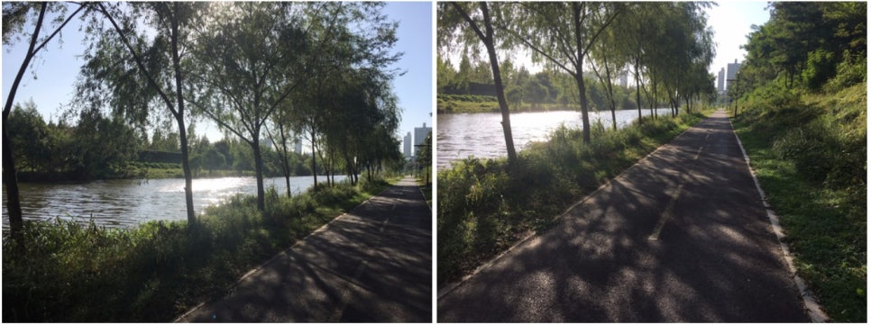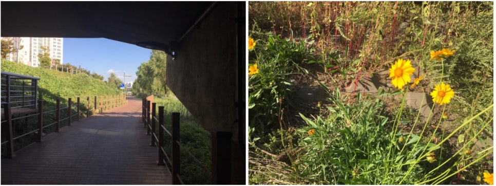 걷다보니 개천이 나와서 개천을 따라 쭉 걸었어요