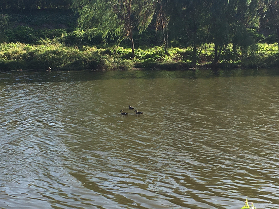 개천을 따라 걷다보니 오리 세마리가 ...