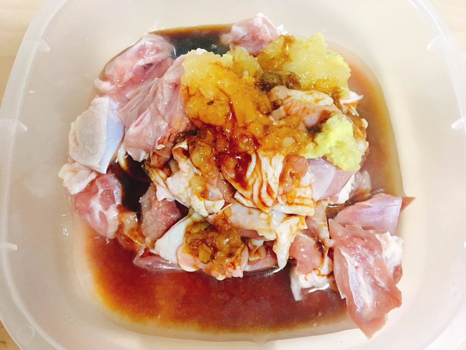 - 생강, 마늘, 술, 간장 을 넣고 버물버물 한뒤 약 30분에서 1시간 재웠어요