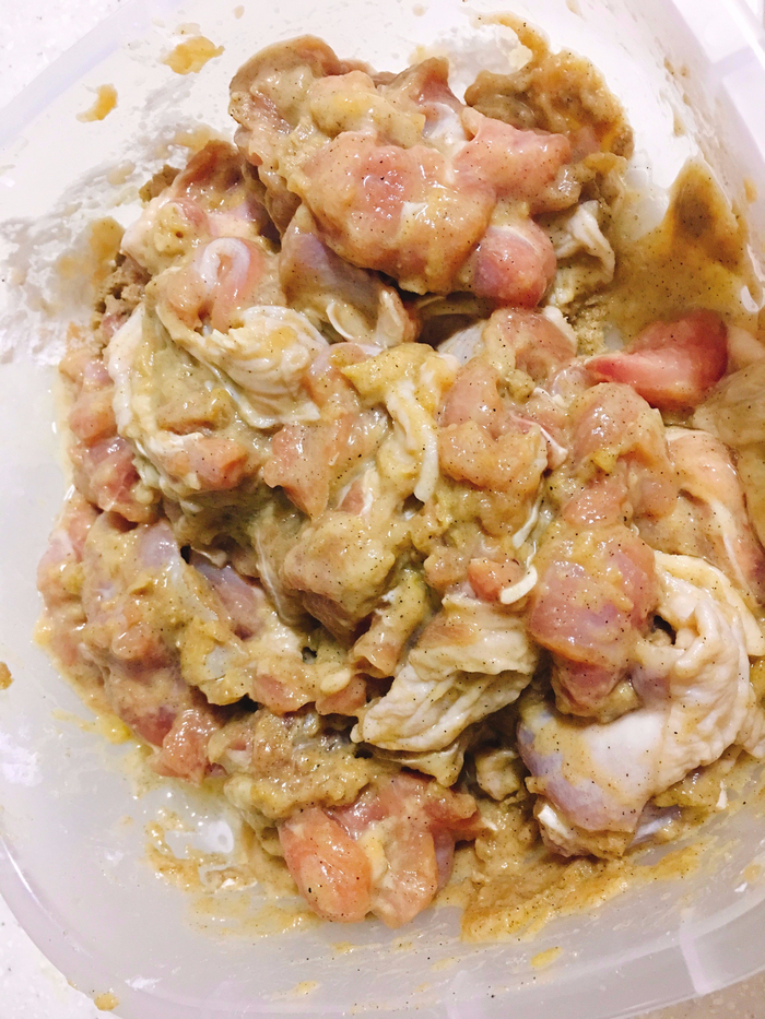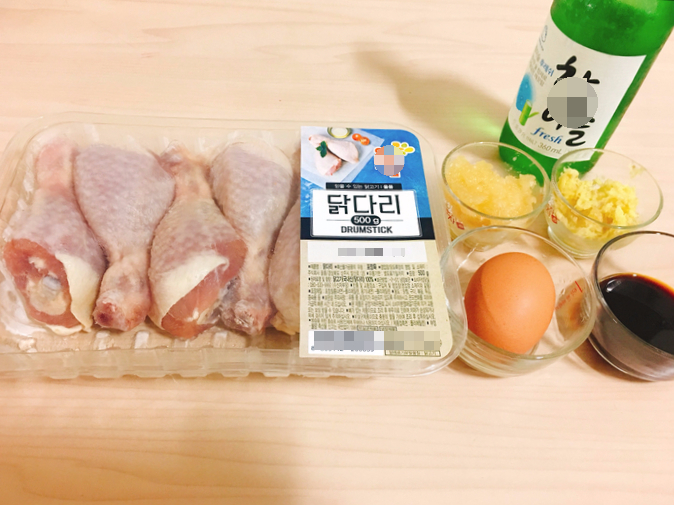 재료 : 닭다리, 맛술 이 없어서 소주, 다진마늘, 다진생강, 간장, 계란노른자